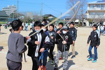お別れ遠足の際に計画されるぴょんぴょんタイム(長縄跳び大会)に向けての練習だそうです。