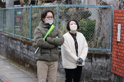 1月10日、始業式の日のあいさつ運動の皆様+一華