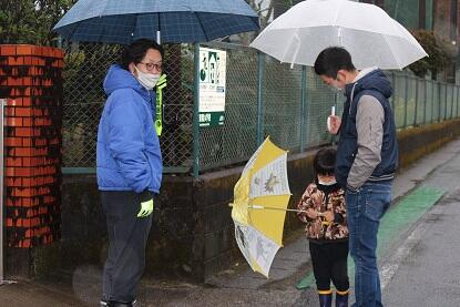 また、学校支援ボランティアの皆様、そして6年間、交通指導に立っていただいた中津留様も朝のあいさつ運動に取り組んでいただいています。