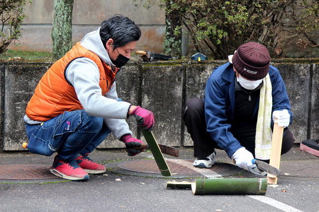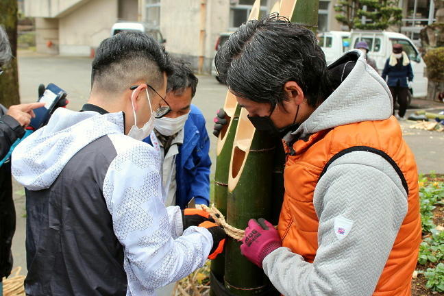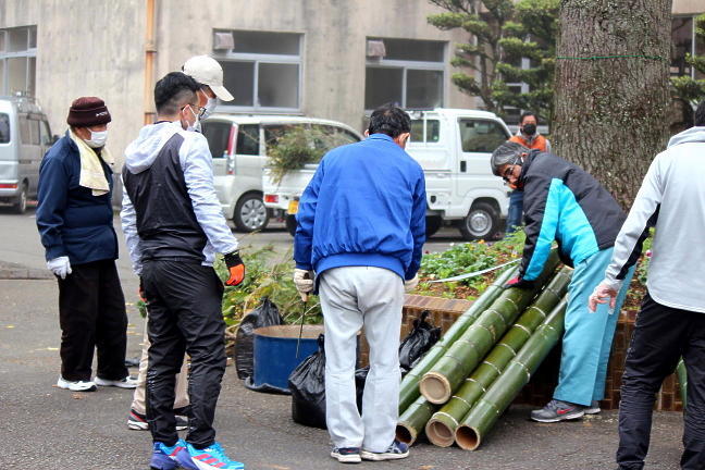 PTAのみなさんによる門松づくり