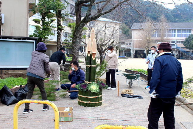 12月11日、PTAのみなさんそして学校支援ボランティアの皆様に門松を作っていただきました。