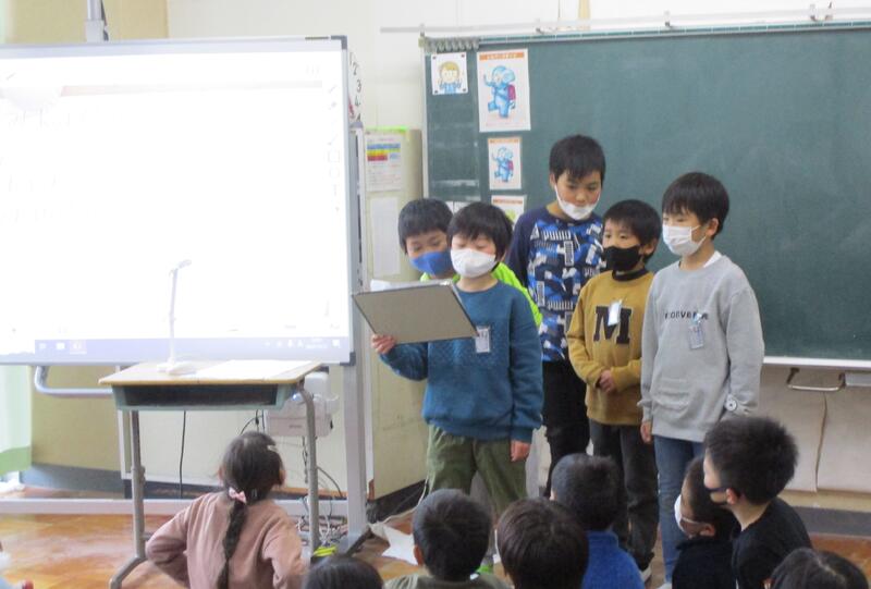 2年生は、12月22日(火)の3・4時間目に、町探検で学習したことをグループごとに発表しました。紙芝居やクイズ、ペープサートを使った劇など、それぞれのグループで発表の仕方に工夫が見られました。