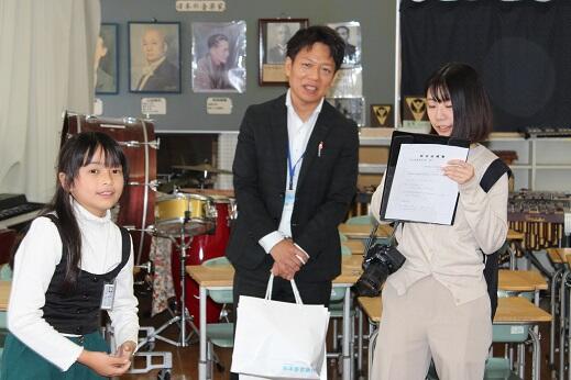総合的な学習の時間で「福祉」をテーマに学習している4年生が代表して受け取りました。