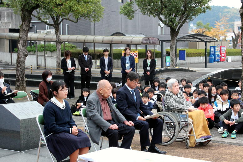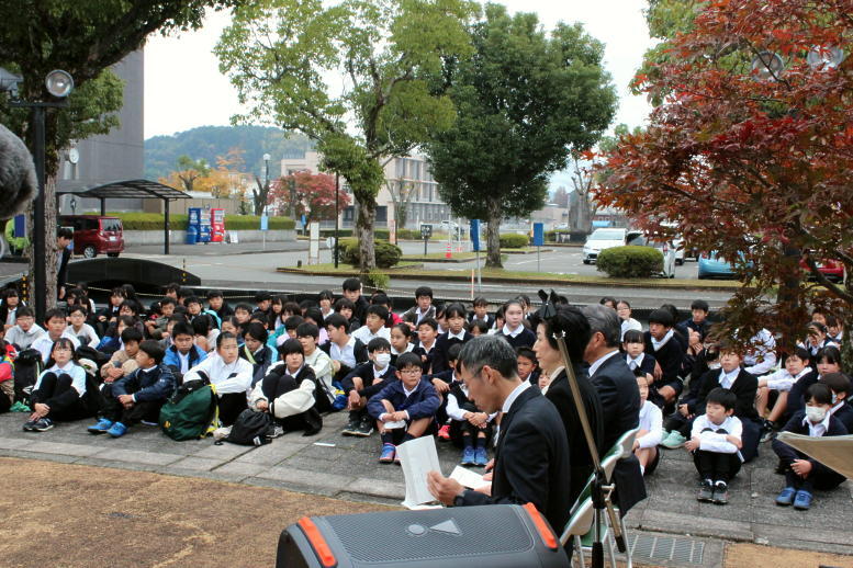 本校の6年生が参加し、旅愁及び故郷の廃家を歌いました。学校代表として上高原さんが献花を行ったところです。その様子についてはクマロク及びその他のマスコミで紹介される予定です。