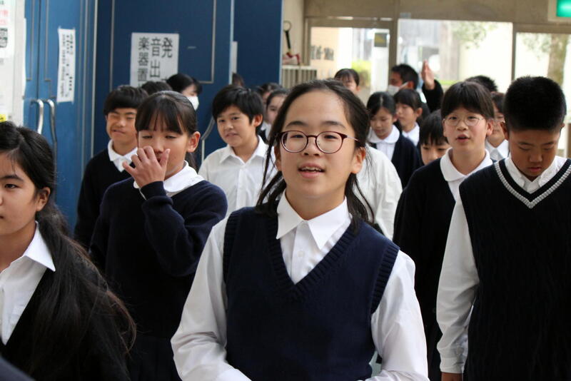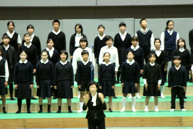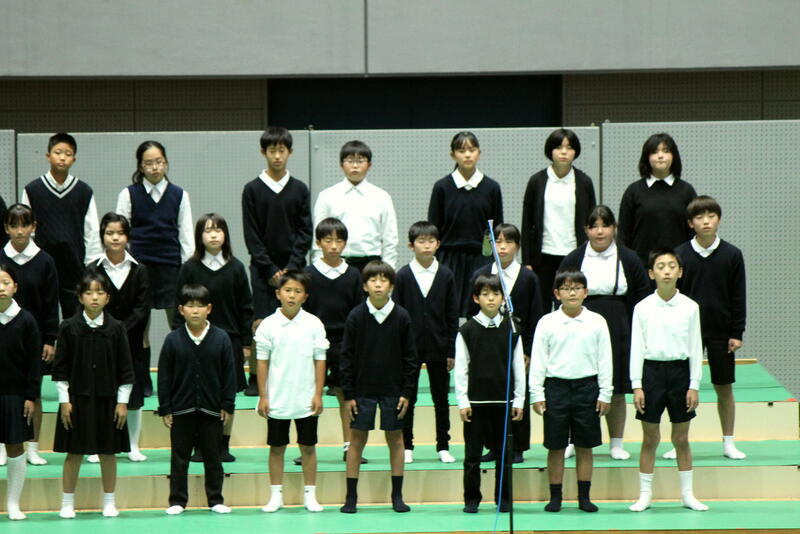 東間小学校は、午前の部の最後、プログラム20番で「山を見つめて~東間小の音楽室から見える山々をみつめて~を合唱しました。併せて、午前の部閉会前の全体合唱で旅愁を歌ったところです。