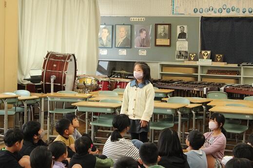 10月27日(金)、朝の読み聞かせをしていただきました。子供たちがしっとりと聞いている姿が印象的でした。