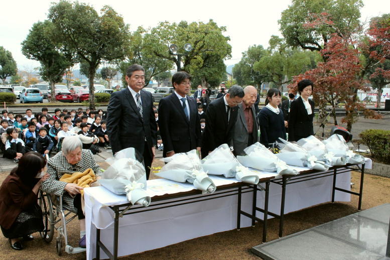 本校の6年生が参加し、旅愁及び故郷の廃家を歌いました。学校代表として上高原さんが献花を行ったところです。その様子についてはクマロク及びその他のマスコミで紹介される予定です。