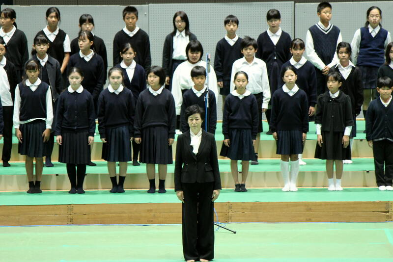 東間小学校は、午前の部の最後、プログラム20番で「山を見つめて~東間小の音楽室から見える山々をみつめて~を合唱しました。併せて、午前の部閉会前の全体合唱で旅愁を歌ったところです。