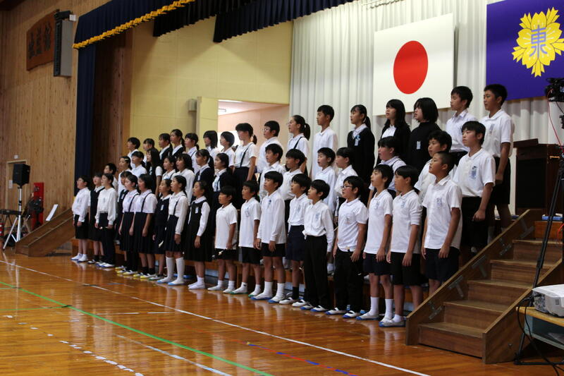 1年生から6年生まで、素晴らしい発表をすることができました。やはり、東間小学校は歌唱指導を中心に、これからも音楽の指導で高めていくことが伝統を作ることになることを強く確信しました。犬童球渓先生の心を引き継ぐのは東間小学校の児童であることの誇りを持たなければなりません。