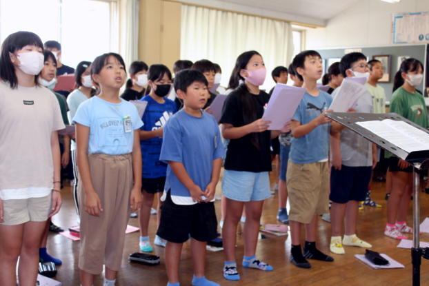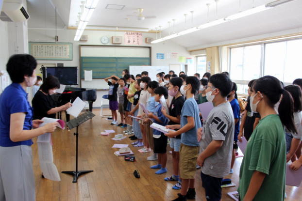 はじめて、私も聞きましたが、東間小学校にはこれからもずっとずっと残し続けたい曲でした。東間小学校のために作詞作曲された曲ですので、東間小学校にしか存在しないものです。