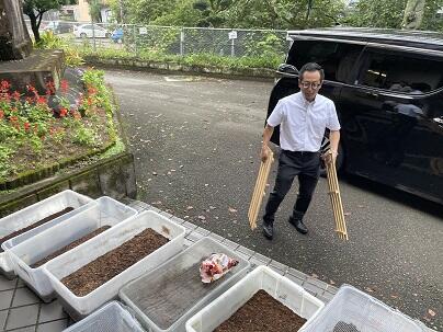 松本様がカブトムシを飼っていたところ、たくさん卵を産んで、増えたとか。東間小学校に分けていただきました。来年の夏にはカブトムシがゾロゾロ。子供たちが喜びそうです。