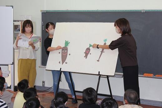 今日(9月22日)、PTA読み聞かせボランティアが行われました。3年生には、今年2回目となるパネルシアターが行われました。