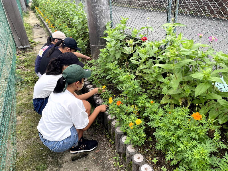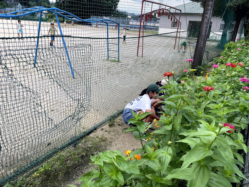はじめは花と草の違いが分からず、花を抜いてしまう子供もいたのですが、今では花と草との違いに気づき、上手にとっています。「気づく」という感性は、体験を通して学ぶものですね。