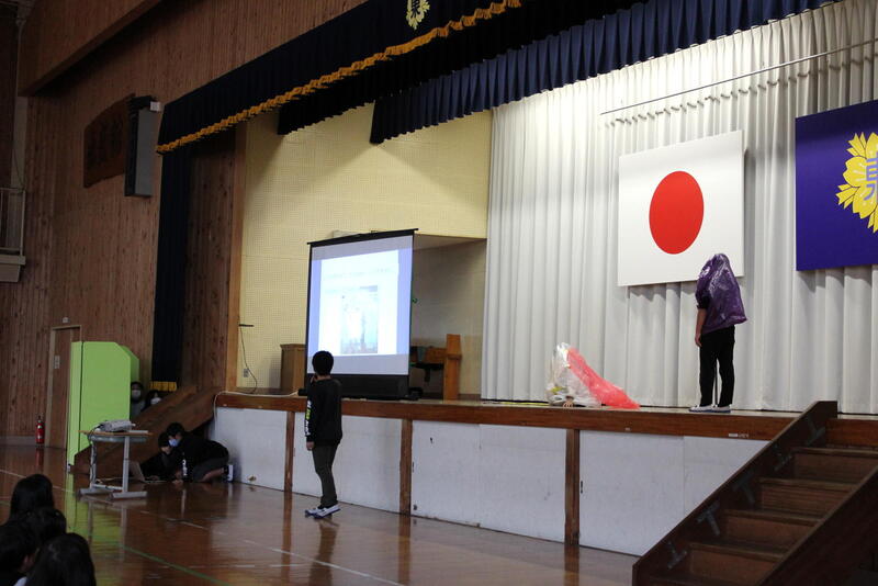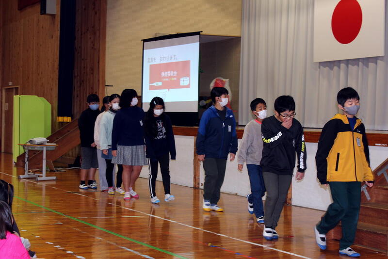 1月26日(金)、朝の全校集会で給食委員会の発表がありました。委員会の子供たちで工夫したクイズ等を行いました。