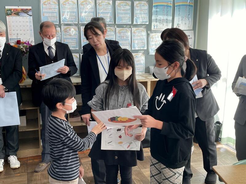 1回目は6年生がお昼をご一緒させていただきましたが、今回は4年生が給食をともにいただきました。市長の随行としてこられた石本さんも急遽、子供たちと一緒に持ってこられたお弁当を食べられることになりました。