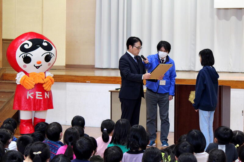 けんしろうさんは、緊張気味でしたが、賞状をしっかりと受け取りました。おめでとうございます。