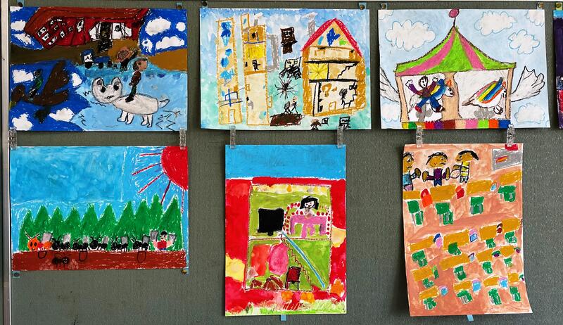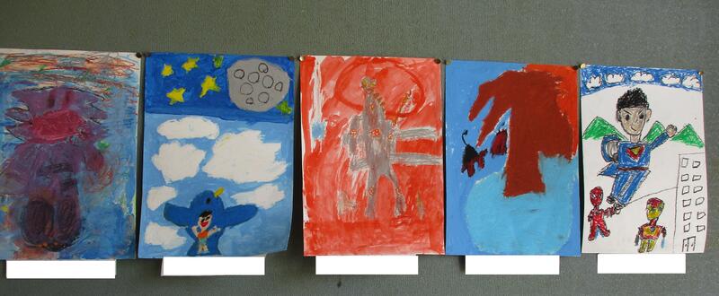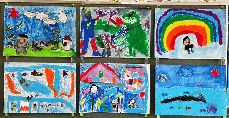 図工で、“こんなこと、できならいいなぁ”と思っていることを絵に描きました。子どもたちの思い描く夢はいくつもあります。これしたい!、あれしたい!を組み合わせた夢をたし算して描きました。子どもたちの夢をのぞいてみると、どれも素敵で、心が温かくなります。