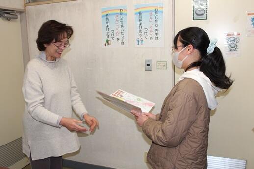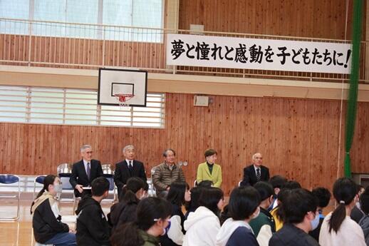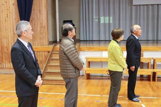 当日は、退職校長会から5名の先生方がお越しいただき、西口会長(なんと田中ちひろ先生のお父様)から目録を贈呈していただくとともに、陽光桜の意味を教えていただきました。