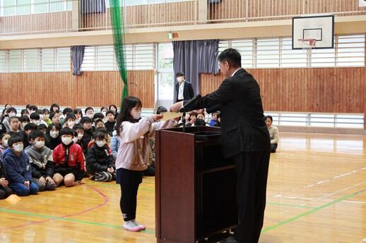 あいだっ子集会で子供たちの表彰を行いました。表彰の内容は次のとおりです。