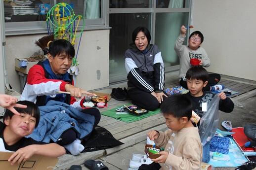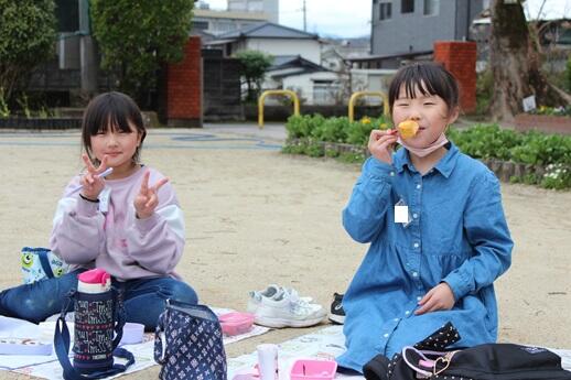 イレギュラーで変わったことの方が思い出に残ることもあります。運動場でそれぞれにお弁当を広げ、おやつを楽しんでいました。