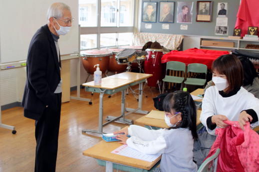 新年に入っても、6年生の子供たちは朝のボランティアを行いつつ、東間小学校にその姿を残し続けてくれています。もちろん、ここに写っている子供たちだけではありません。正門など、あらゆるところでがんばってくれています。