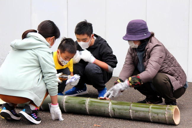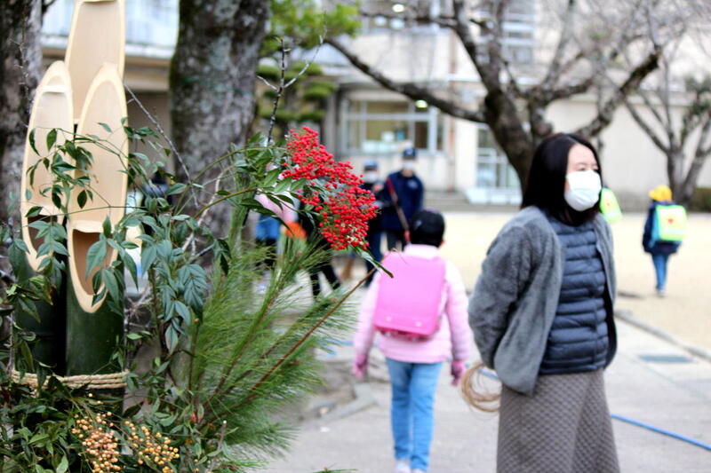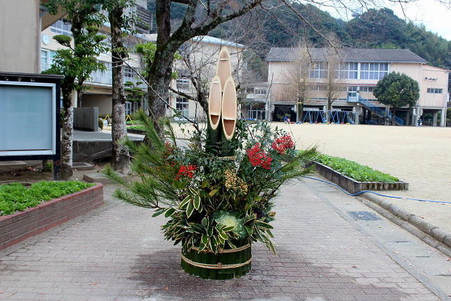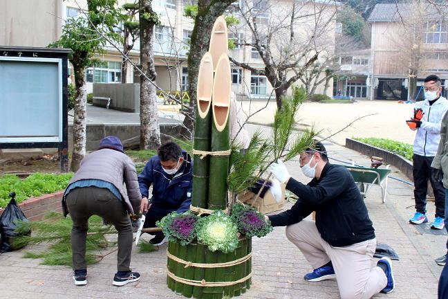12月11日、PTAのみなさんそして学校支援ボランティアの皆様に門松を作っていただきました。