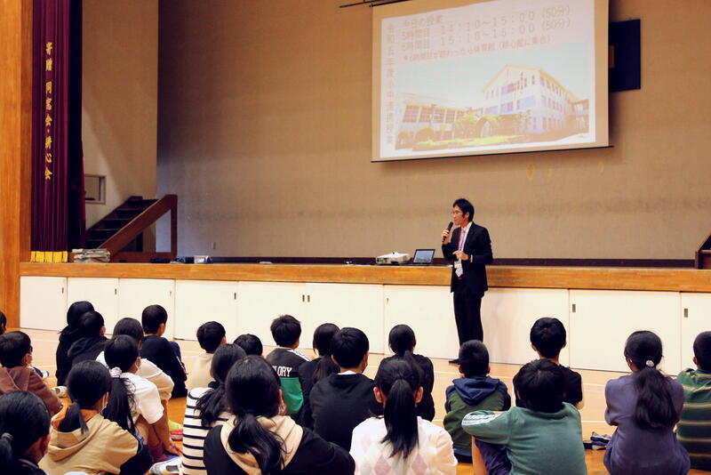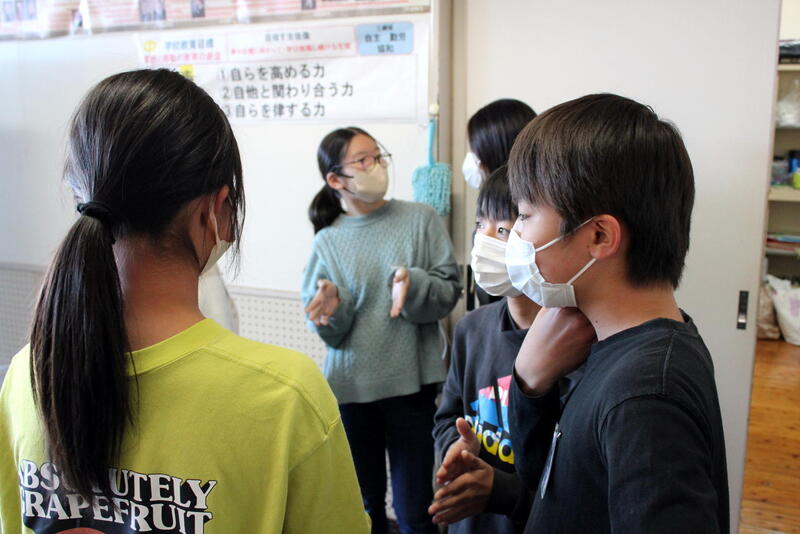 11月13日(月)、「熊本の学び研究指定校」の取組の一環として、一中校区交流会を開催しました。人吉東小学校、東間小学校の子供たちが一中に行き、第2学年の生徒(次年度3年生)さんと交流を深めました。