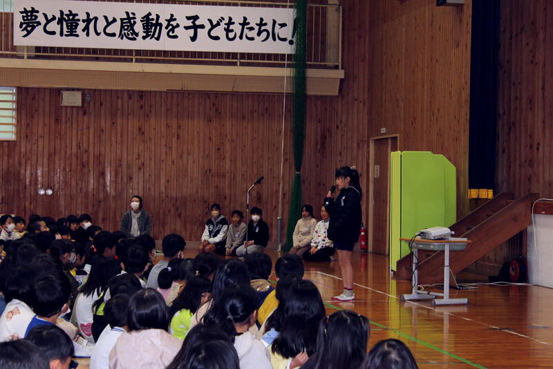11月17日(金)、朝の集会の時間に保健委員会の児童によるむし歯予防の発表がありました。