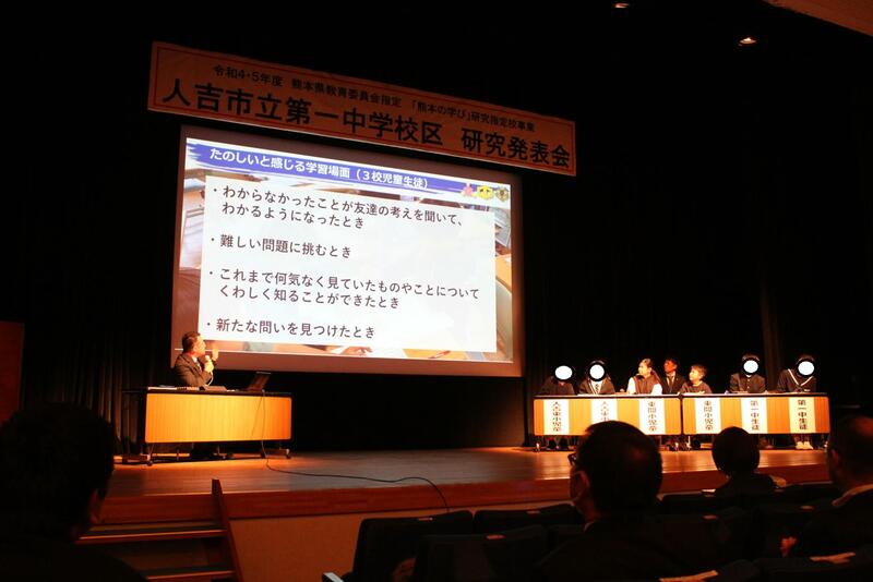 「熊本の学び」研究指定は、発表会は終わりましたが、これで終了するわけではありません。これまでの取組を更に推進し、本校のすべての教員に、3校のすべての教員に、人吉市のすべての教員に浸透していくまで取組を続けています。すべての子供たちが生き生きと取り組める授業、学校の環境、家庭学習等につながるよう、度食を重ねて参ります。