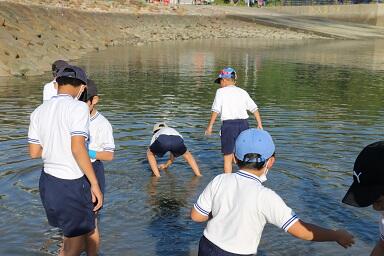 カッター船から下りた子供たちは、マリン活動に取り組みました。日頃、触れることのない海の生物を観察したようです。とてもよい活動だったと担任からも聞いたところです。