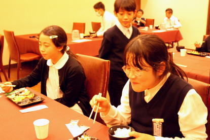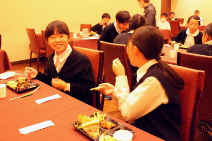 6時30分、子供たちは朝食に向けて、準備を始めています。