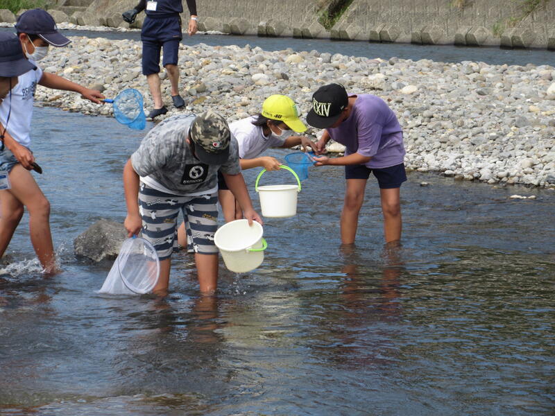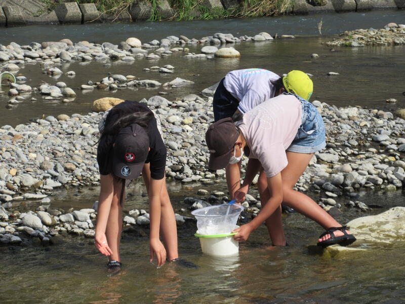21日(金)に、胸川へ水生生物調査へ行きました。まず、学校支援ボランティアの平井さんから採り方の説明を聞き、その後、川に入って、石の裏の水生昆虫を採取しました。多くの子供たちが、膝下まで水につかりながら、夢中になって採集していました。中には、足を滑らせて水の中で尻餅をつく子供たちもいて、終始、笑顔の絶えない活動となりました。今回の採集では、ヒラタカゲロウ類やヘビトンボ類等たくさんの生物が採れ、胸川が生き物豊かな川であることを実感しました。