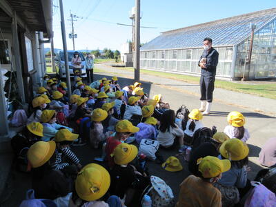25日(火)に南稜高校へ生活科見学に行きました。南稜高校では、高校生の動物クイズや動物とのふれあいをしました。クイズでは、「犬の肉球は、いくつ?」等の難問もあれば、「ひよこは、大きくなると何になる?」等のみんなが答えられる問題もあり、みんな大盛り上がりでした。動物とのふれあいは、山羊への餌やり、ポニー・ウサギ・犬・ニワトリに触れました。その後、ポニーの特技や犬が日頃訓練していることを見せていただき、子供たちは、動物たちのすごい能力にびっくりした様子でした。また、今回は特別に生後約1ヶ月の犬の赤ちゃんも見せていただき、子供たちも充実した学習ができました。
