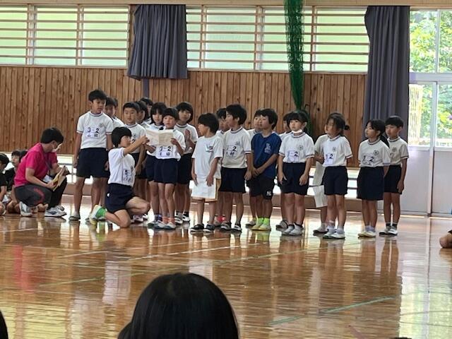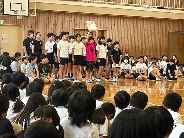 6月20日(金)、全校児童による「人権集会」を行いました。まず、学級毎に人権目標を発表しました。1年生からは「ふわふわ言葉を使って友達にやさしくします。」などの目標の発表がありました。