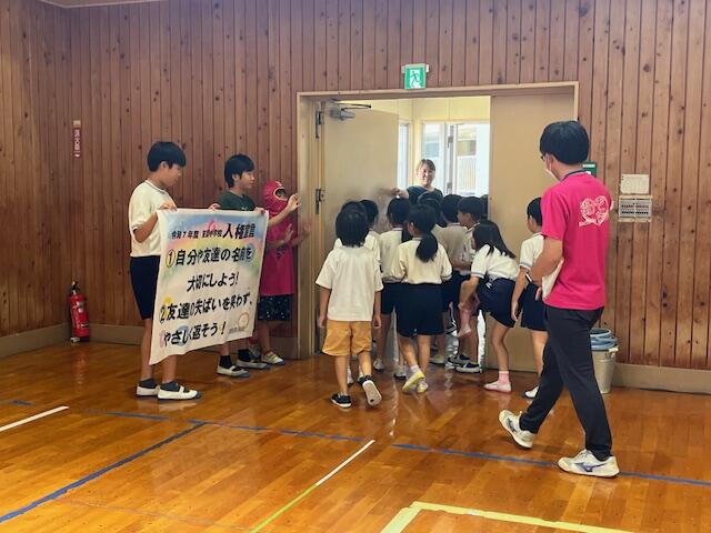 最後に全員で東間小学校の人権宣言を読み上げました。今年度の人権宣言は「①自分や友達の名前を大切にする! ②友達の失敗を笑わず、やさしく返そう!」です。宣言が宣言で終わってはなりません。この宣言内容を行動に移すことのできる「あいだっ子」となってくれることを願っています。