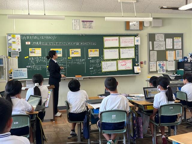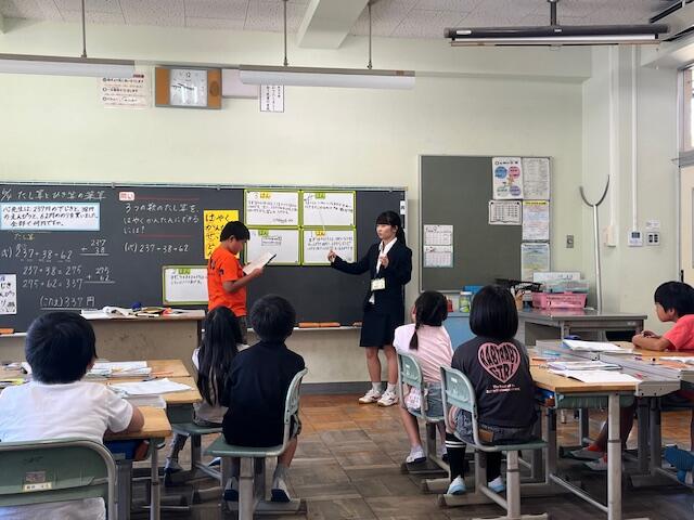 5月末から6月初めにかけて3人の教育実習生が、東間小で実習に励んでいます。3人ともに東間小の卒業生です。元気一杯、笑顔一杯の先生方の姿に子供たちもうれしそうです。