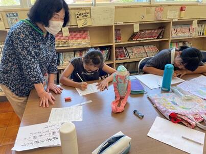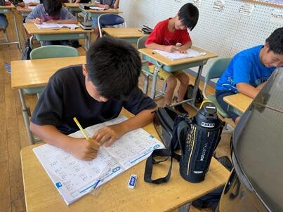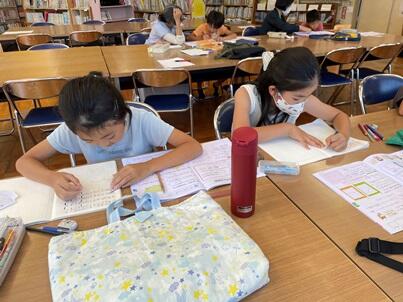 PTA主催の学習教室では子供たちも元気に登校してくれて、夏休みの宿題を頑張ってくれています。友達と一緒に勉強して、ボランティアの先生たちのアドバイスを受けながら、2時間があっという間に感じるくらい真剣に取り組む姿は感心するばかりです。一方で友達と楽しそうにしている姿も微笑ましく、いい雰囲気です。