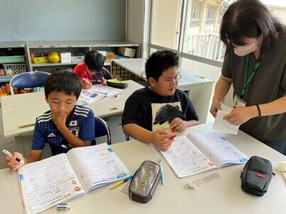 水曜日を除く4日間学習教室を行っています。心地よい雰囲気の中、いい表情で学習をしている子供たちを是非のぞきに来てみてください。