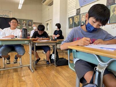 PTA主催の学習教室では子供たちも元気に登校してくれて、夏休みの宿題を頑張ってくれています。友達と一緒に勉強して、ボランティアの先生たちのアドバイスを受けながら、2時間があっという間に感じるくらい真剣に取り組む姿は感心するばかりです。一方で友達と楽しそうにしている姿も微笑ましく、いい雰囲気です。