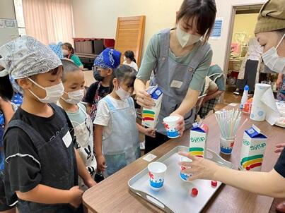 団子が蒸しあがるまでの時間でかき氷を楽しみ、お団子の試食もボランティアの方と一緒にして、作り上げる達成感と親子で触れ合う時間の穏やかさを感じる1日となりました。夏休みの『記憶に残る1日』になってくれると嬉しいです。