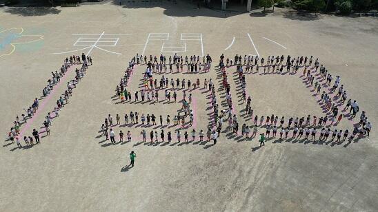 昨日、球磨工業高校のみなさんにひいていただいたラインをもとに、ドローンによる空中撮影を行いました。早朝より150周年実行委員の皆様、そしてPTAの皆様にご協力をいただき、中尾様が操縦するドローンにより見事に人文字を作成することができました。