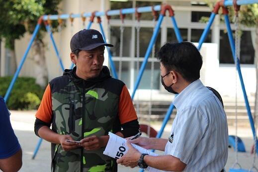 そのために、なんと球磨工業高校の建設工学科の先生と生徒さんが、朝からドローン撮影のためのライン及び校章を運動場に描いていただきました。本当に暑い中、先生と生徒さんが夕方までかかり、素晴らしいラインを引いていただきました。