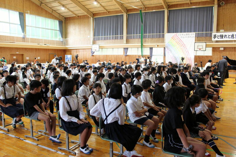 たくさんのご来賓の皆様のご臨席のもと、5・6年生参加による素晴らしい式典となりました。当日は6年生がセレモニーを行い、感謝と未来についてメッセージを述べました。