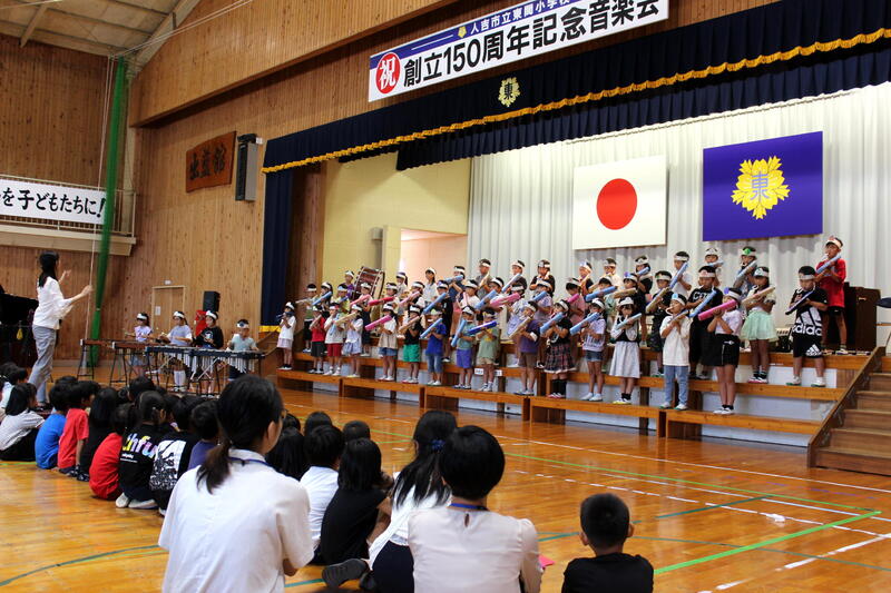 150周年記念式事業の日に合わせて、校内音楽会を開催しました。体育館には入りきれないくらいの保護者の皆様の参加に大変ありがたく思いました。