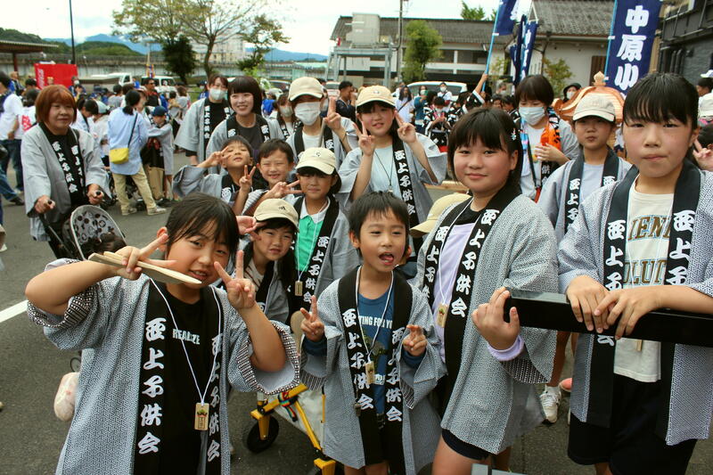 本日、10月9日、人吉球磨の伝統文化であるおくんち祭りに東間小学校区から4つの子供神輿が参加しました。はっぴを着た子供たちの元気なかけ声、暑さの中疲れた表情、応援する保護者、地域のみなさんの様々な姿が見られました。沿道にもたくさんの観覧者が集まっていました。