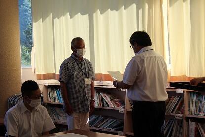 本日は、教育委員会から10名の協議会委員への委嘱状交付の後、私から東間小学校の現状について概要を述べさせていただきました。