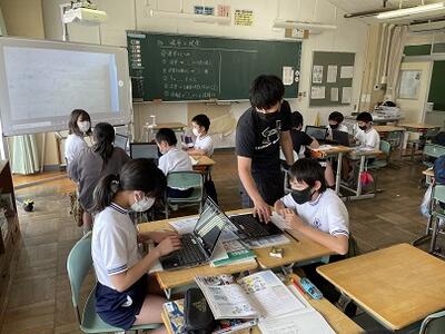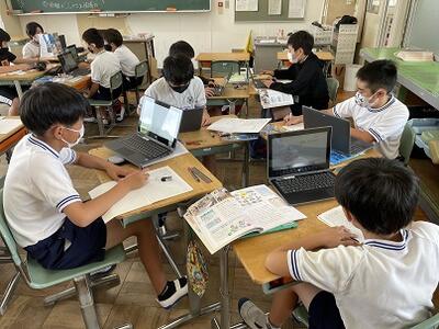 そんな中、授業の様子を見て回っている際に、6年生がタブレットを使って、調べ学習をしていました。