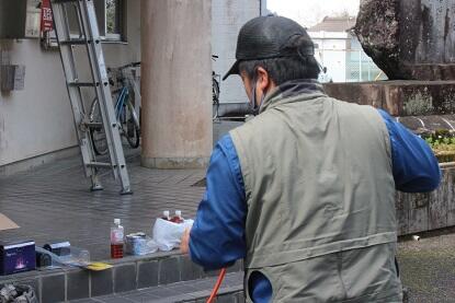 今日は、6学年委員長の中津留様がサッカーゴールの塗装をしてくださいました。