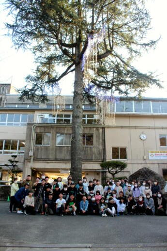 中津留様、山本様、球磨電設の皆様によって、校門のヒマラヤスギ周辺に設置していただきました。