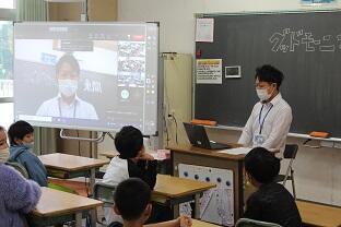3年1組の佐藤教諭がメインキャスターとなり、トイレのスリッパを荒嶽教諭が実況中継を行いました。くつ並べの様子は、田中教諭が実況中継を、廊下の歩き方について田代教諭が現場から、実況中継を行いつつ、呼びかけました。